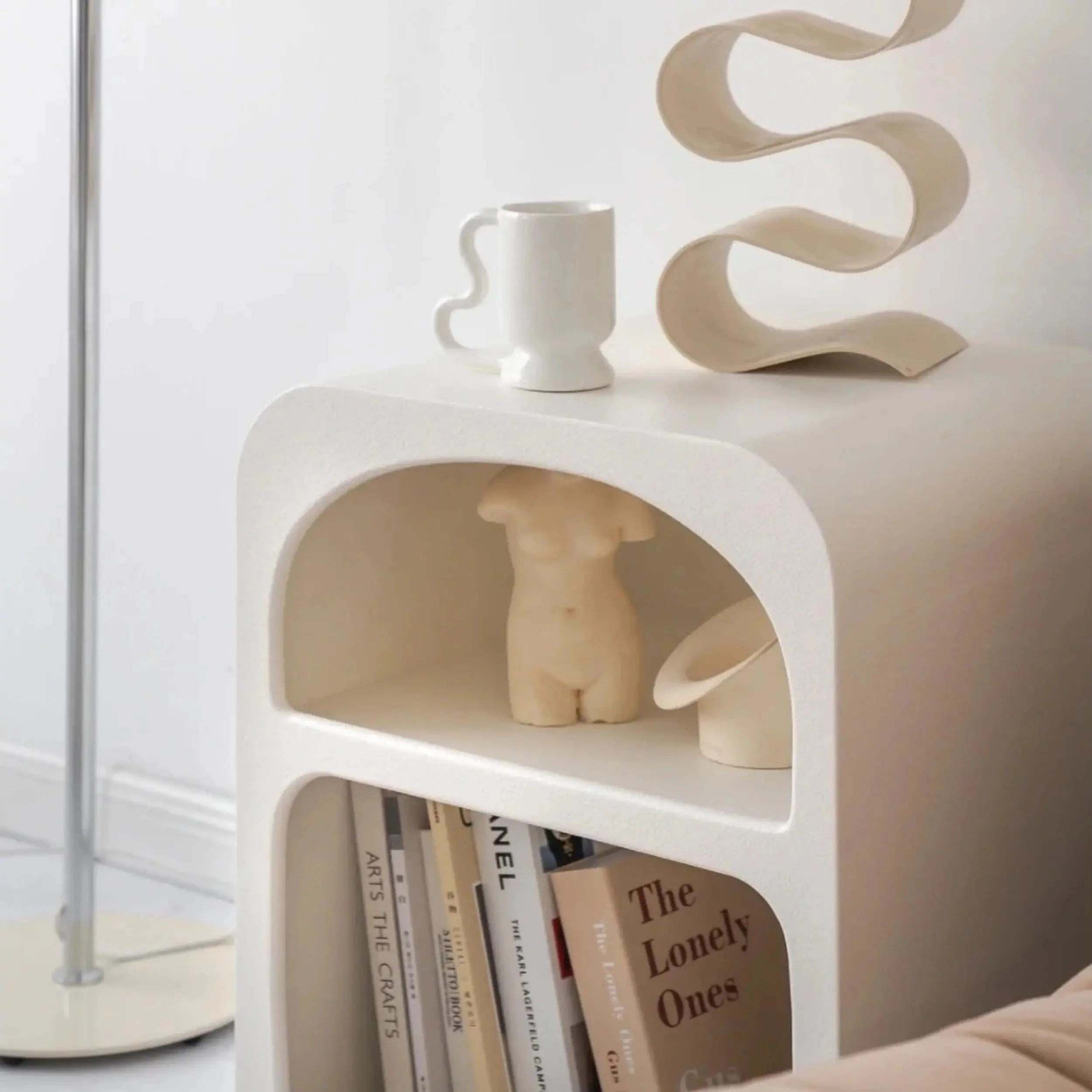 Introducing the Elso side table. This stunning piece is perfect for adding a touch of drama to your space. The curve silhouette creates a look that is both elegant and modern. The open shelf provides ample storage for all of your essentials.